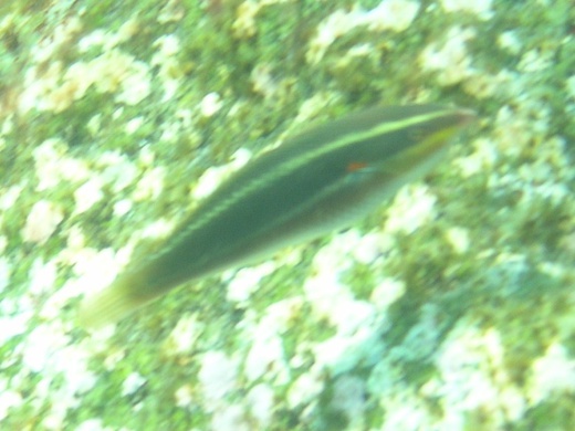 The redspot wrasse changes in colouration as it grows, matures and changes sex. It transitions through two phases – initial (females) and terminal (transition between female and male). In the adult phase the fish changes sex to male and the colouration is altered. The body is brownish green on the upper half and light blue to white on the lower half. Four thin, wavy iridescent blue lines begin at the mouth and behind the eye and run horizontally along the body. The orange spot at the base of the transparent pectoral fin in the initial phase darkens to be a deeper red. The cheeks are faint yellow. Read more…