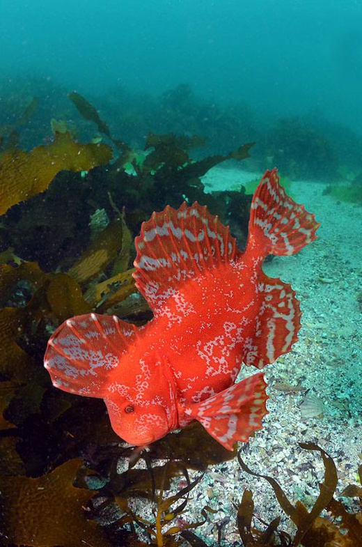 Red Velvetfish, Gnathanacanthus goetzeei Sighted at The Rock, Waubs Bay, Bicheno Tweet Weight 0.300kg Depth 14m