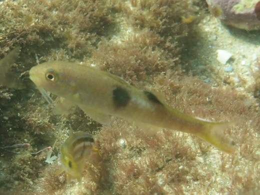 The body is pinkish white with a large oval shaped black spot followed by an often-elongated white spot. In some individuals the spots may be of the same size and shape. In others the spots differ substantially. Barbels are a lighter shade of the body colour. A black marking is at the base of the second dorsal fin. In some individuals this extends onto the upper portion of the tail. In some fish the scales may have white edging, producing a mottled look, especially around the head. Read more…