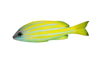 Silver to grey body with yellow tinge on top of head. All fins are yellow, or have a yellowish hue. Fin spines are relatively large and fou…