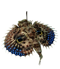 Distinctively shaped fish with a shield shaped body, pointed mouth and elongated dorsal fin. Colouration is also a distinguishing feature w…