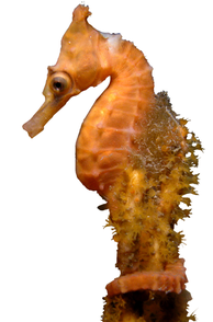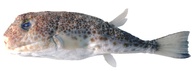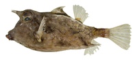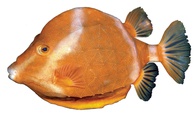 A boxfish with a concave snout and a high arched back. Males and females differ in colour – males are orange with a few white bands on the …