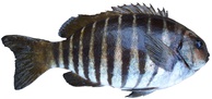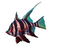 This fish has five dark vertical bars on pale body and a black streak at top and bottom of its tail fin. Length: Up to 22 cm