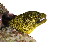This fish has a long eel-like body. The dorsal fin runs the majority of the dorsal surface, beginning from above the eye and ending on the …