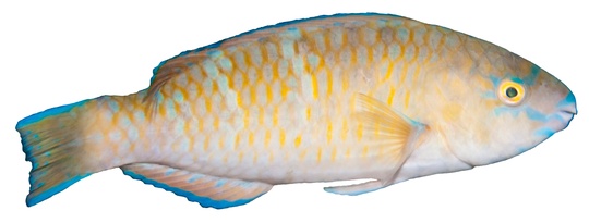 The bluebarred parrotfish undergoes colouration changes as it grows, matures and changes sex. It transitions through two phases – initial (females) and terminal (transition between female and male).