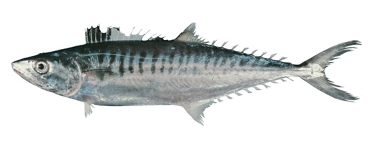 Streamlined silver body with small scales. The upper surface is generally darker and can be a shade of green and yellow. The lateral line is wavy from the end of the first dorsal fin towards the tail. Fins are yellowish in colour with dark edges. A series of finlets are present on the tail section. Along the body there are a series of vertical disjointed bands. As the fish grows these bands gradually fade. The mouth is pointed with dozens of small pointed teeth.
