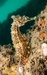 It can be identified by the pointy triangle on the top of its head and the body and tail are rather spiny. It has a shorter tail and a smaller belly than the more common pot-bellied seahorse.