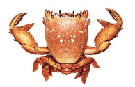 Rectangular body that tapers towards the rear. Orange to red in colour with small white spots on the carapace. The claws face in towards th…