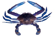 Carapace colour varies from purple through to deep green or brown, depending on habitat, paler green mottling on the claws, legs and rear s…