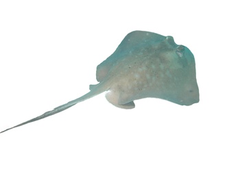 Oval shaped with tail longer than body. Dusky brown-grey in colour on the body. Blue spots adorn the upper body disc and follow no distinct pattern. In some individuals there is dark shading beneath the eyes and on the brow ridge. Tail is grey-white with white banding along the tip. Spines are found on the upper surface around the middle of the tail.